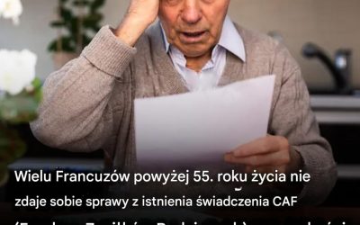 Wielu Francuzów powyżej 55. roku życia nie zdaje sobie sprawy z istnienia świadczenia CAF (Fundusz Zasiłków Rodzinnych) w wysokości 608,91 euro, z którego mogliby nie skorzystać z powodu prostego szczegółu administracyjnego.
