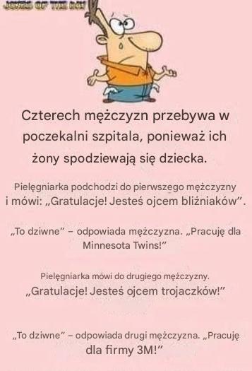 Pielęgniarka jest dostępna dla mężczyzny, który nerwowo stukał stopą. „A dla pana, proszę pana, mam wiadomość. Jest pan czworaczków!”